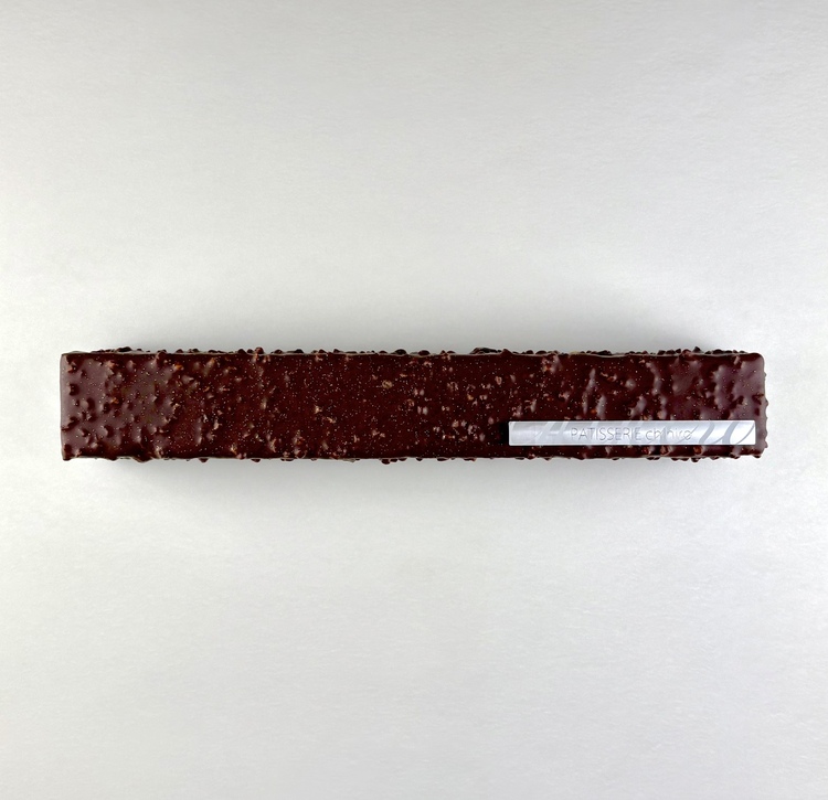 クロッカンやアーモンド、フィアンティーヌと共にホロホロ、ザクザク食感に焼き上げたリーフパイ。「オペラ社」の最高級ショコラノワールでコーティングし仕上げました。