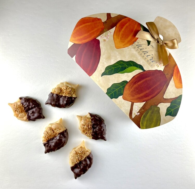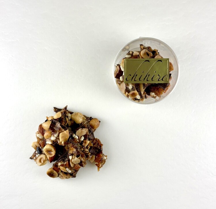 キャラメルやナッツをペーストにした自家製のプラリネに、ゴマ、アーモンド、コーヒー豆を加えることで、chihiroらしい変化を持たせ、