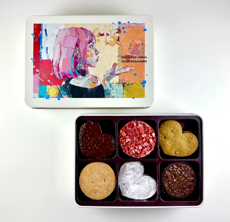 共に宇都宮出身でchihiroオーナーシェフの旧友でもある 時代を担う油彩画家「古河原泉」とのコラボレーション・プロジェクトにより「PATISSERIE chihiro」の『クッキー缶』がリリース。 今回は数量限定の2026年バレンタイン・バージョンとなります。